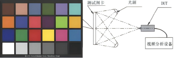 通過視頻分析設(shè)備,分析DUT拍攝各色塊的色度坐標(biāo);