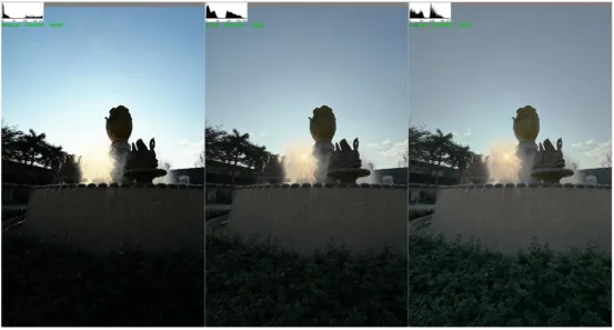 如下所示從左到右依次是低動態(tài)、原圖、高動態(tài)的圖??梢?
