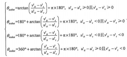 色調(diào)角:表示顏色的色調(diào)方向,通過u'、v'坐標(biāo)與白點的相對位置計算。