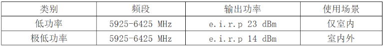 下表描述了 6GHz WLAN 的技術條件: