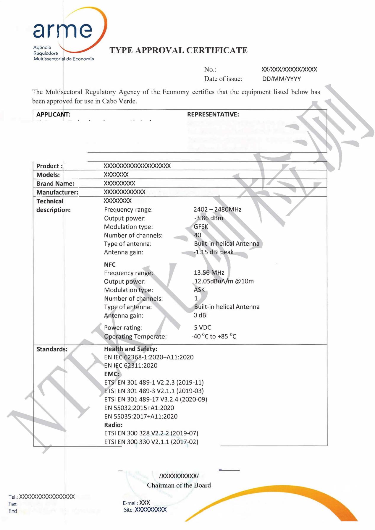 ARME認證覆蓋了多個領域,適用于所有進入佛得角市場的無線技術產品,包括但不限于無線局域網設備、汽車雷達、無線車鑰匙、無線醫療遙測發射機、無繩電話、遠程控制發射機WLAN 設備,藍牙設備,Zigbee 設備, UWB 設備等。