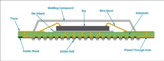 Substrate構成了芯片封裝的基礎結構,類似于建筑的地基。隨后,晶粒Die被精確地放置在Substrate的一側,這一過程被稱為Die Attach。晶粒與Substrate之間通過精細的引線鍵合技術實現連接。為確保芯片的穩定性和安全性,會在其上安裝一個金屬保護蓋,這一過程稱為Lid Attach。此保護蓋通常采用散熱性能優異的合金制成。在另一側,芯片上會安裝錫球,這一過程被稱為Solder Ball Mount。隨后,通過先進的回流焊工藝,確保錫球與SUB之間形成穩固的連接。至此,芯片封裝的基本結構已完成。